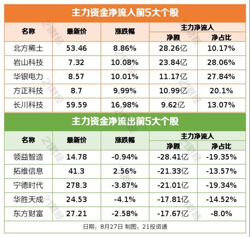 8月27日,A股三大指数今日集体下跌,截至收盘,上证指数跌1.76%,深证成指跌1.43%,创业板指跌0.69%,北证50跌2.6%。沪深京三市全天成交额31978亿元,较上日放量4880亿元。全市场超4700只个股下跌。板块题材上,CPO、稀土永磁、半导体板块表现积极,服装家纺、房地产、白酒、创新药、教育板块跌幅居前。